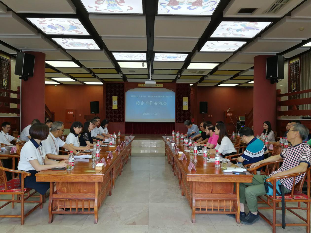 2020年7月20日,四川文化艺术学院副校长欧建华、宋大川带队广播电视学院、文化旅游学院、音乐学院、数字艺术学院、美术学院、设计学院、戏剧影视学院、书法纂刻学院、舞蹈学院以及合作交流部等10个学院及部门负责人到绵投集团·四川越王楼文化传播有限公司开展校企合作考察交流。越王楼公司董事长、支部书记谭屹和各部门主要负责人陪同参观并集体座谈。