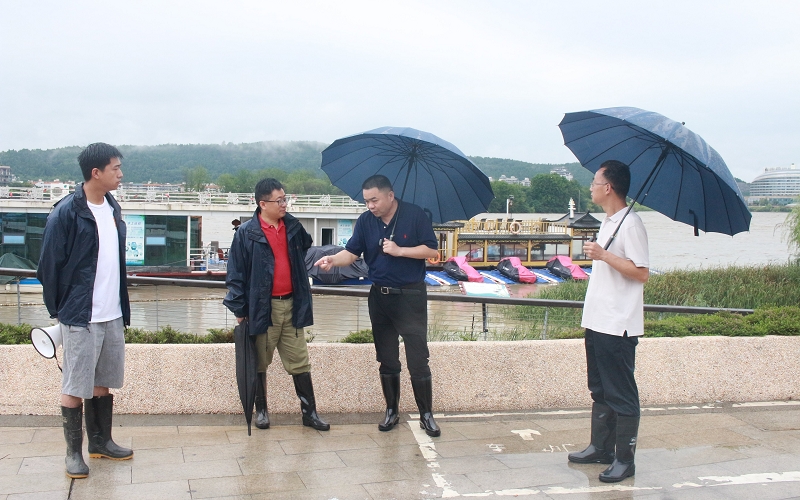 8月11日,随着绵阳市气象台发布暴雨黄色预警,13:00:四级响应,14:30:三级响应,防汛应急响应等级不断提高。15:30,经公司总经理、应急副总指挥张芝海汇报,公司董事长、应急总指挥谭屹下令迅速启动防汛二级响应,应急副总指挥带领警戒组、抢险组等各组立即赶赴现场,迅速组织设置禁行标识牌,布设隔离带,封闭廊桥,关闭韩家脊栈道,有序疏导游客市民;通知商家停止营业并劝离顾客,提前搬离贵重物品,禁止人员留守留宿;登上游船码头、龙舟码头和新龙舟等码头各船舶,检查缆绳系固及动杆情况,特别是豪威尔趸船的安全状况;搬运防汛沙袋,设立挡水墙,减缓水势上涨,帮助商家转移物资。
