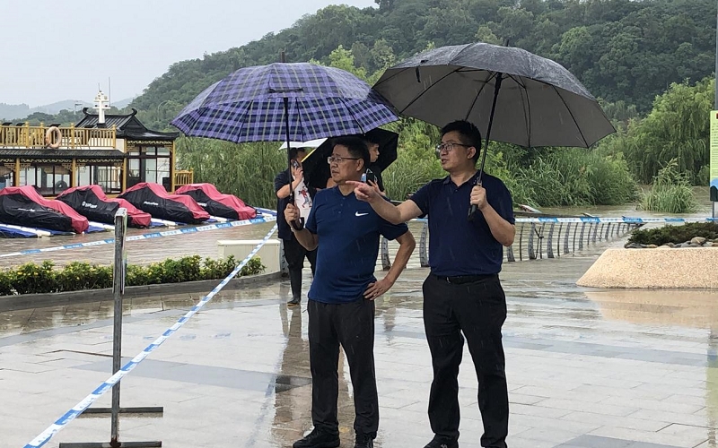 在三江半岛防汛应急现场,越王楼公司不断加强安全巡视,联合街道办、城管、巡特警排除各类潜在隐患,劝导和疏散误入封闭区域的市民。市委副书记刘光强、绵投集团董事长肖林、副总经理景茂斌、副总经理黄小秋先后亲临现场,详细了解了防汛工作开展情况,并沿途查看了各关键节点防汛工作落实情况。