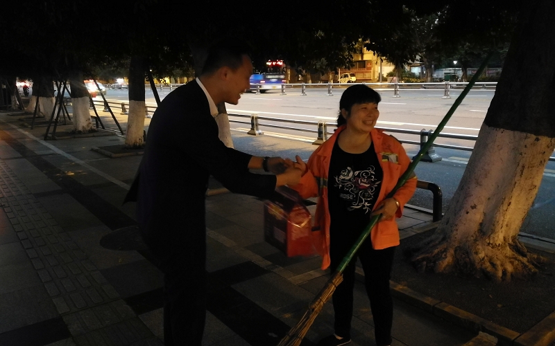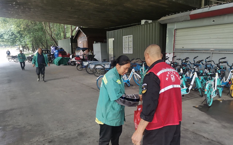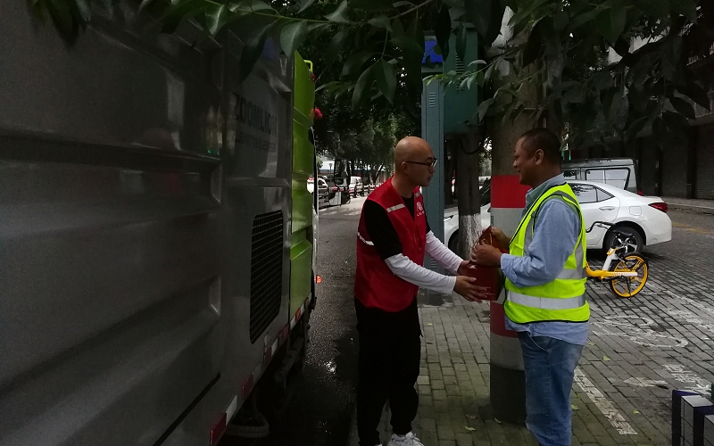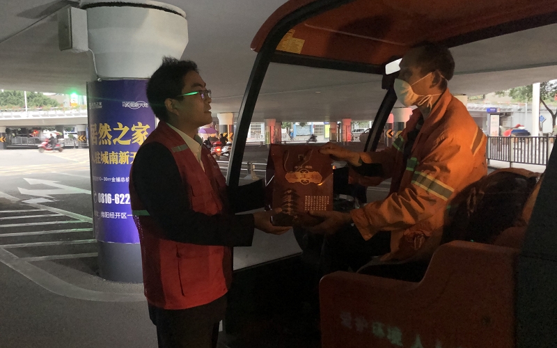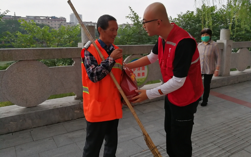 活动期间志愿者们通过走访慰问的方式向正在岗位上奋战的环卫工人们送上节日的问候及祝福,对他们日复一日始终坚守在一线岗位,为城市的洁净默默奉献、辛勤劳动表示感谢。