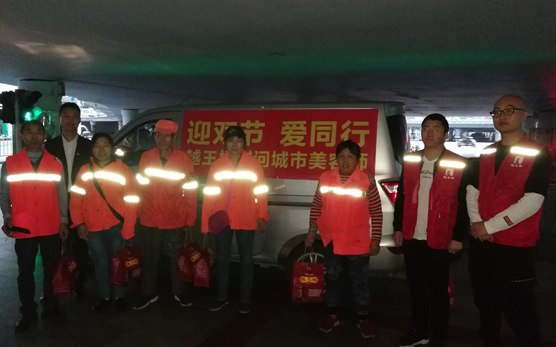 月到中秋分外明,花好月圆人欢庆。恰逢国庆、中秋“双节”到来之际,越王楼公司志愿服务团队于2020年9月30日清晨在绵阳主城区交通干道沿线、城市公园、车站等地开展中秋节走访慰问环卫工人送祝福送关爱活动,为辛勤工作的环卫工人送上节日的问候,并分发月饼。